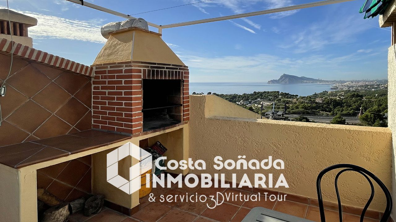 VT38473 Se alquila bonito bungalow en Altea Hills de dos plantas para larga temporada, en un excelente estado. Se distribuye en la primera planta en una amplia sala principal, salon comedor, salida al balcón, con las vistas magnificas. Cocina, landry, baño de cortesía. En la segunda planta hay dos dormitorios y un baño completo. También tiene solárium, con barbacoa y un armario para guardar las cosas. Parking numerado para un auto.