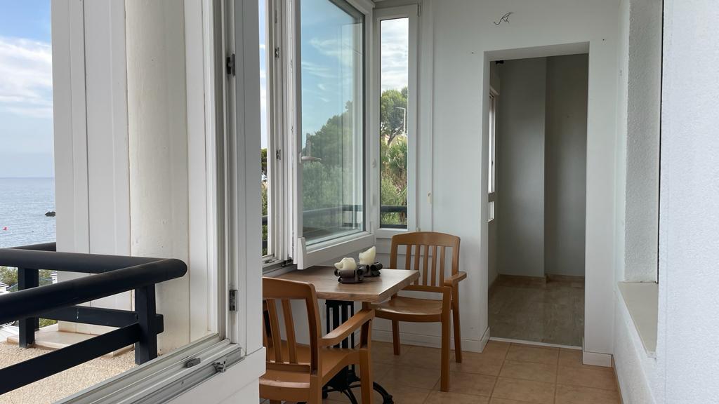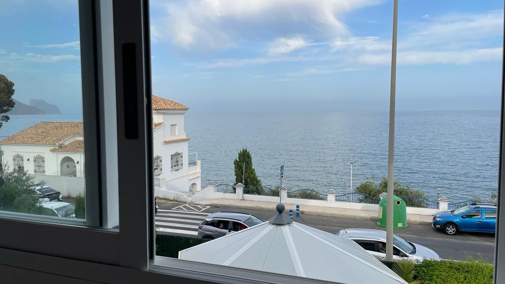 C11069AA Se vende un apartamento en la primera linea de la playa en Altea la Olla. El apartamento se distribuye en una amplia sala de estar con la salida al balcon acristalado con deoble cristales y el balcon se uno con el dormitorio principal. Tiene cocina independiente con landry, dos dormitorios y un baño. Zona comunitaria, garaje, piscina. Vistas despejadas al mar.