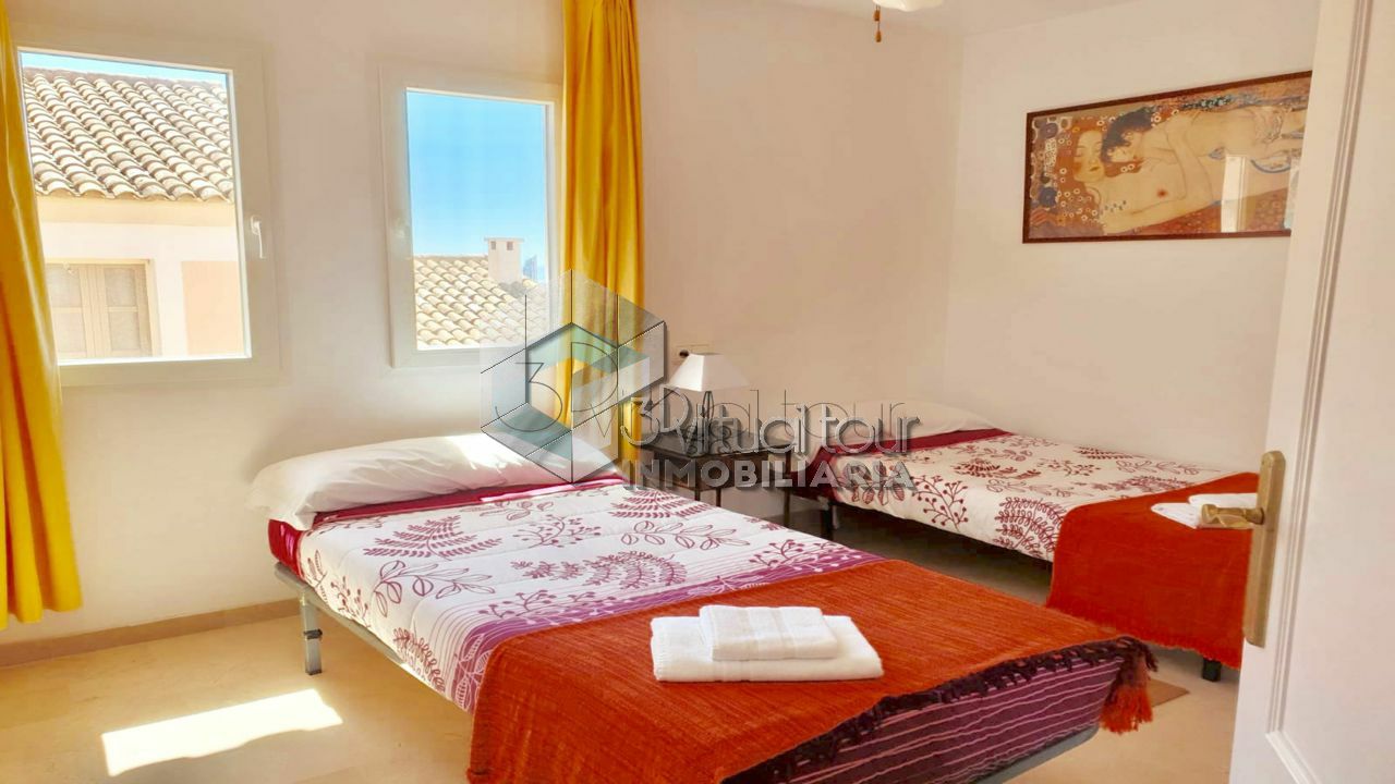 VT10902FA Se vende un bonito atico en la zona residencial de Golf de Bahia de Finestrat. El edificio es de 2 plantas, el atico esta ubicado en la segunda planta, con las vistas despèjadas, por adelante hay un parque. El apartamento se distribuye en una amplia sala de estar, cocina americana, tiene tres dormitorios y dos baños. Garaje comunitario. Piscina comunitaria.