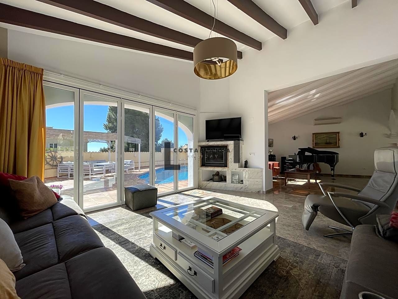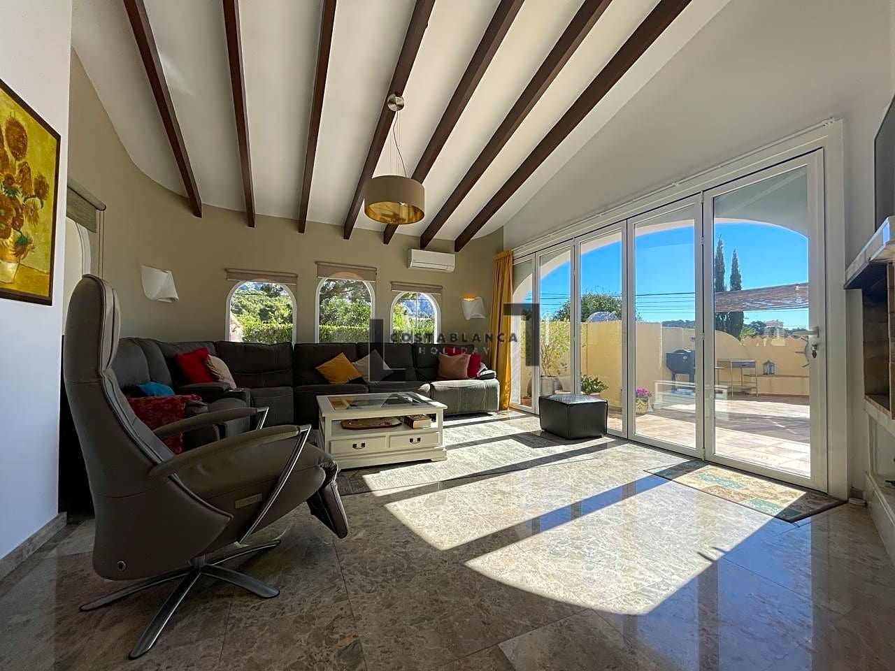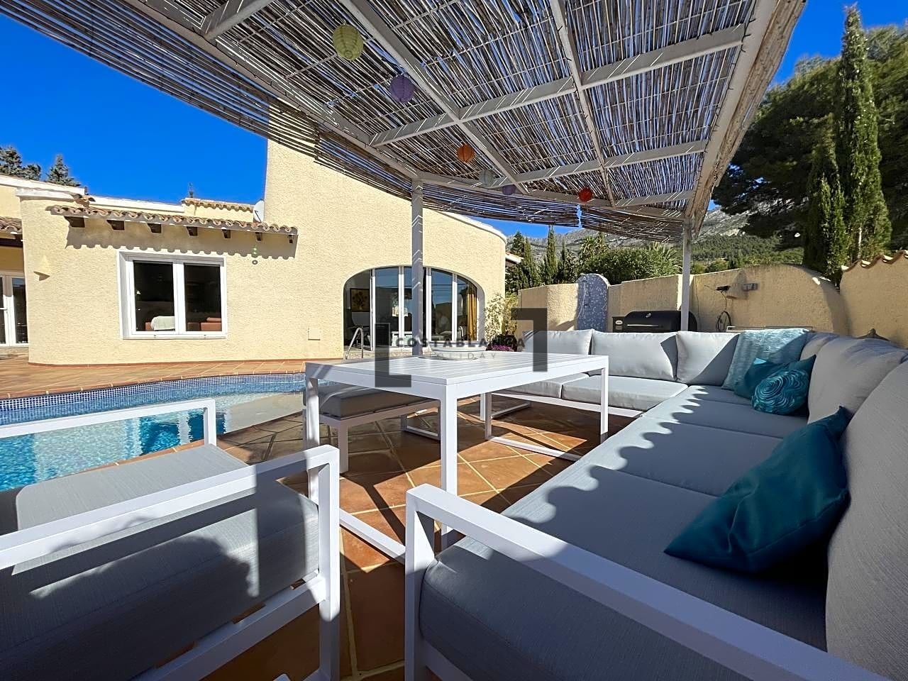 ¡Bienvenido a la casa de tus sueños! Esta acogedora villa es una joya rara en el corazón de un barrio codiciado. Todo en una sola planta, esta espaciosa propiedad cuenta con un cálido y acogedor hall de entrada, que conduce a una sala de estar completa con una acogedora chimenea.La cocina americana totalmente equipada con comedor es perfecta para celebrar reuniones y entretener a los invitados. La villa cuenta con otro salón con acceso directo a la piscina, rodeado de amplias terrazas, un lugar ideal para tomar el sol y relajarse.Con 4 dormitorios y 2 baños, hay mucho espacio para que disfrute toda la familia. El garaje tiene capacidad para 1 automóvil, mientras que el área de estacionamiento es perfecta para varios automóviles más.Equipada con aire acondicionado fríocalor, riego automático y sistema de alarma, esta villa está diseñada para garantizar su comodidad y tranquilidad. Además, cuenta con una envidiable posición orientada al sur, que ofrece impresionantes vistas de la Sierra Bernia y mucha privacidad.No se pierda esta increíble oportunidad de poseer un pedazo de paraíso en este lugar tan deseable. ¡Contáctanos hoy para programar una visita y experimentar el estilo de vida que te mereces!