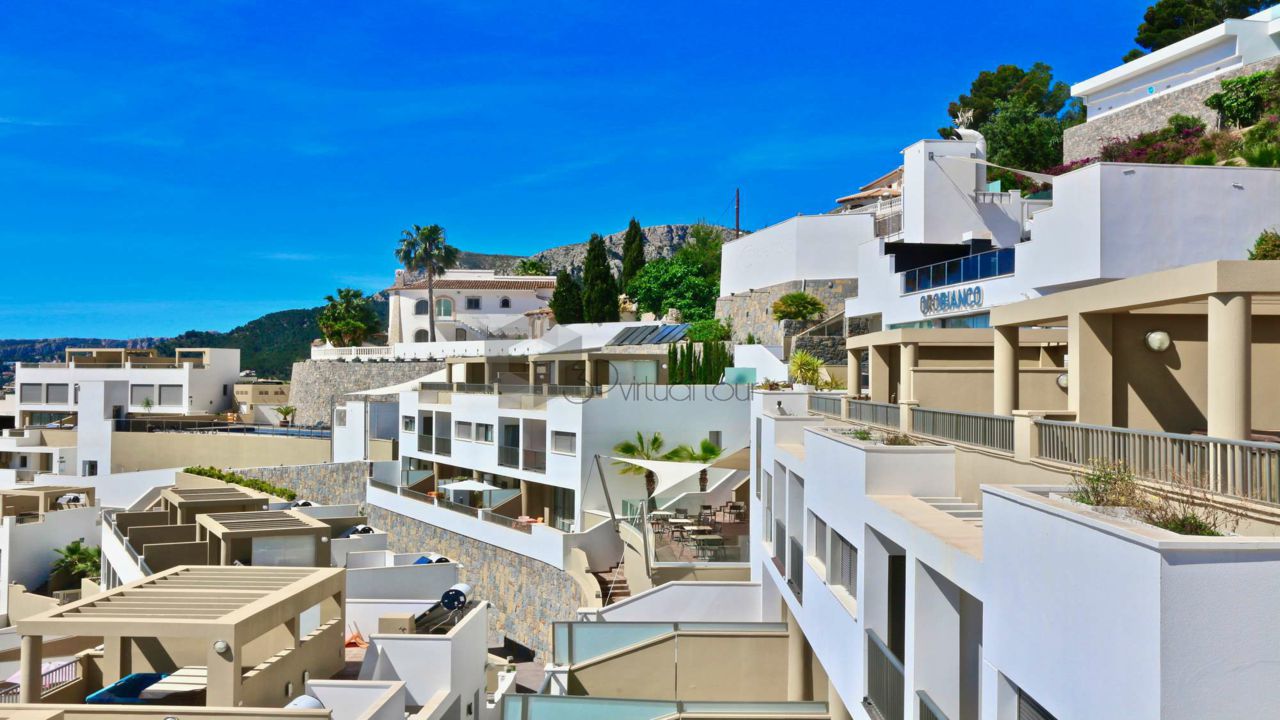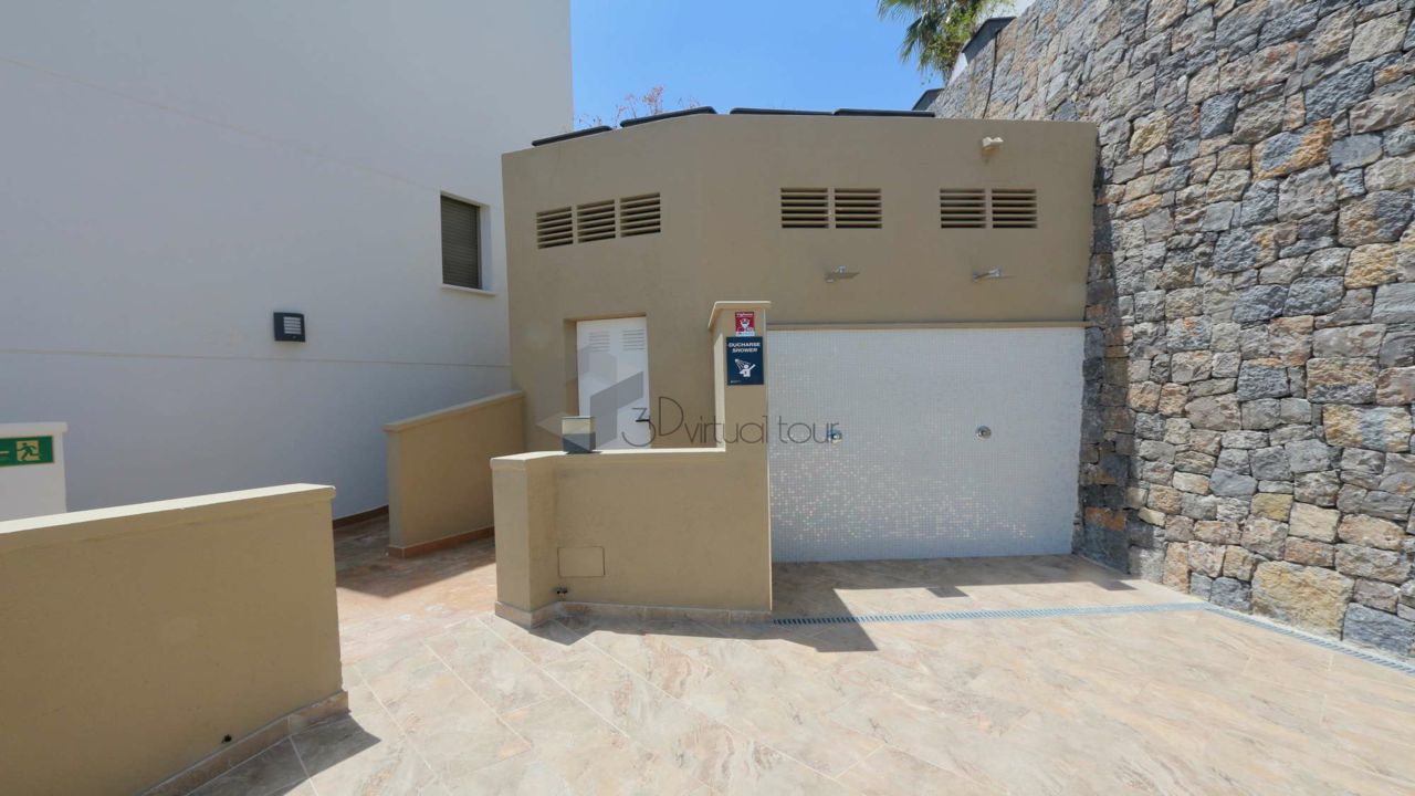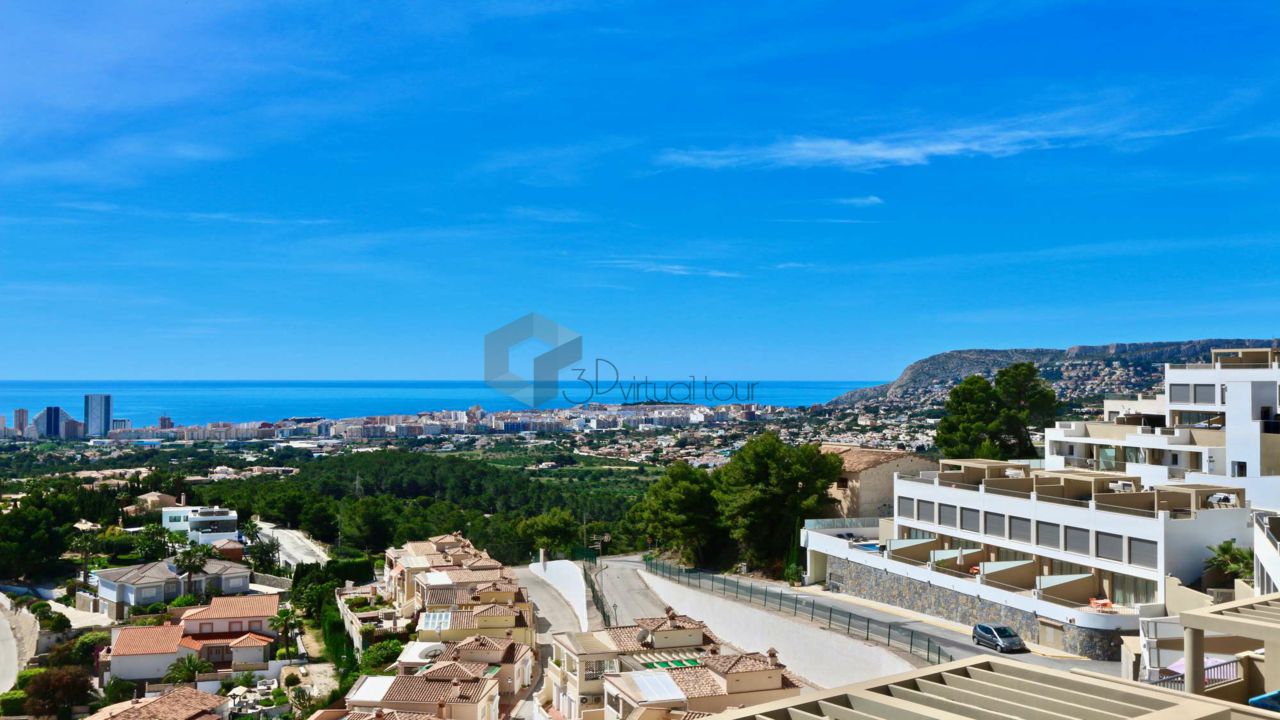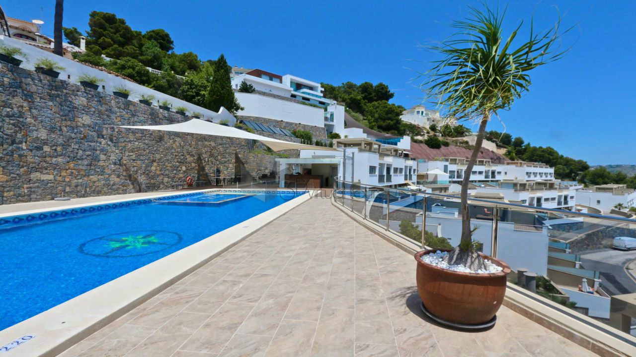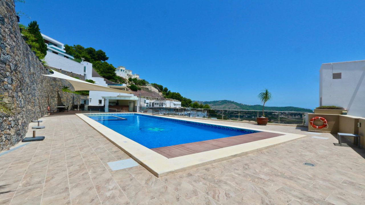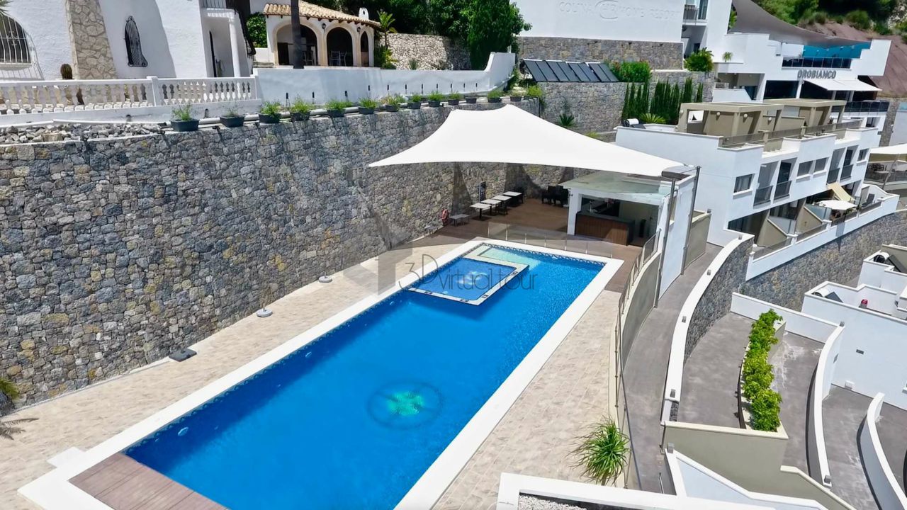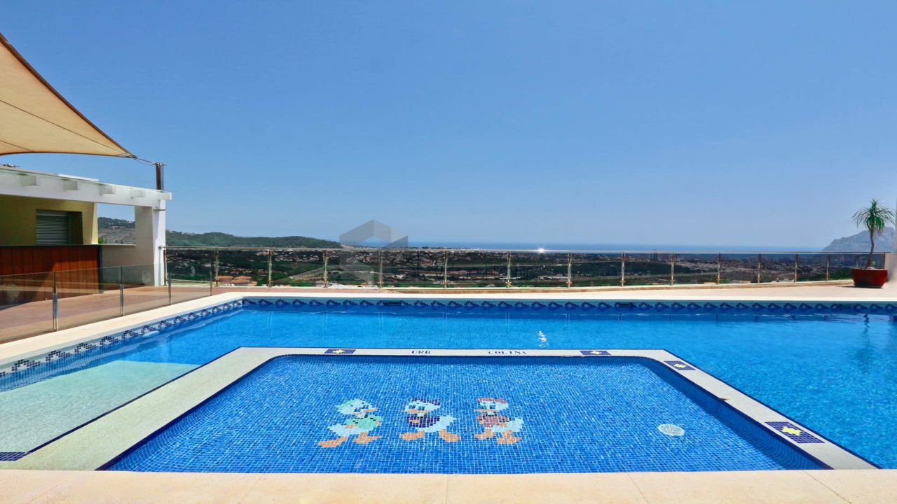 VA547CI. Se alquila un bumgalow en Calpe, con impresionantes vistas al mar. En la planta principal hay una cocina, un baño de cortesia, una amplia sala de estar con salida a la una gran terraza abierta con la piscina, vistas al mar. En la primera planta hay 3 dormitorios y 2 baños. Tambien hay un solarium con jacuzzi con impresionantes vistas al mar. Landry, Parking numerado. Piscina privada y comunitaria.