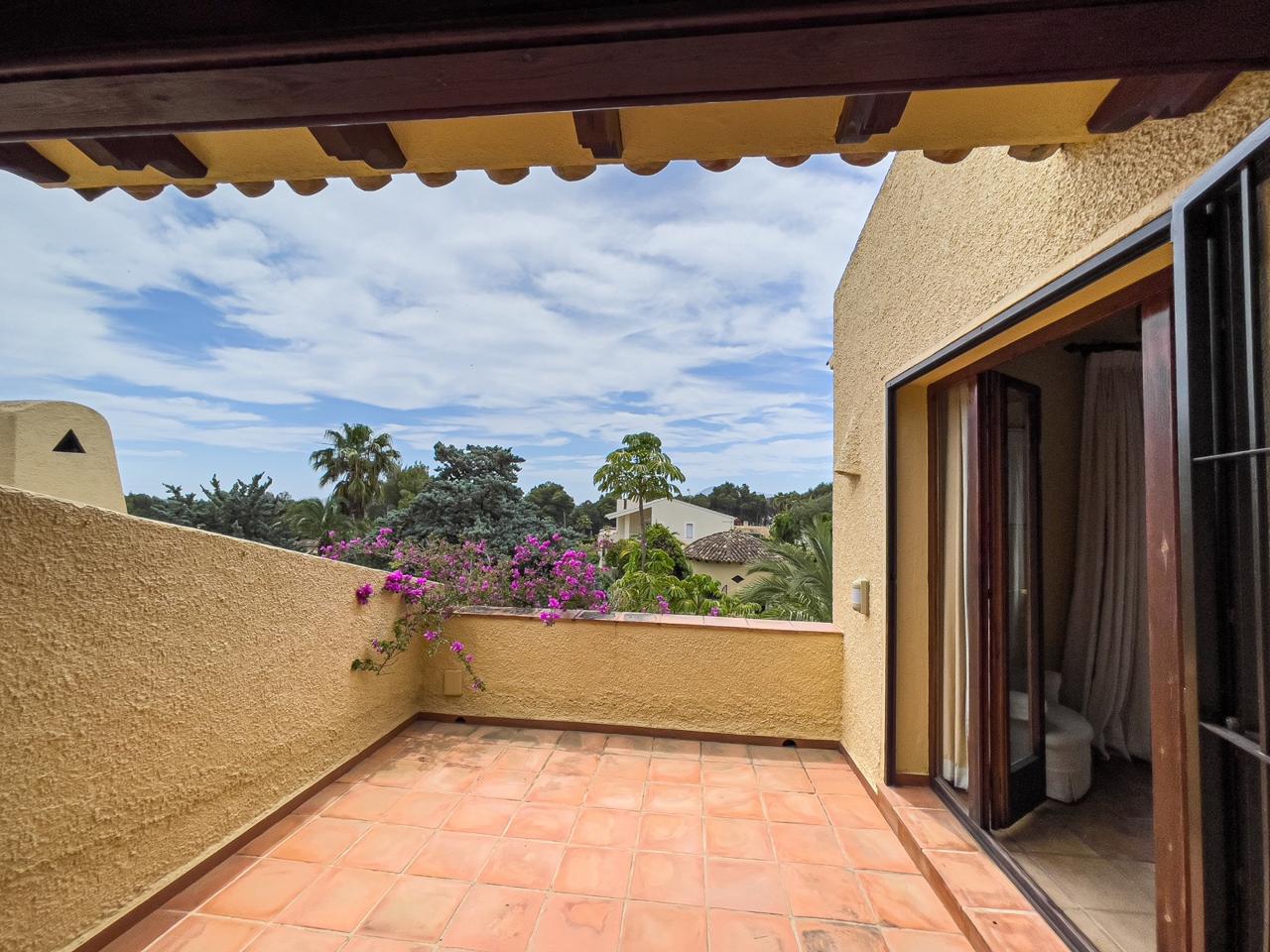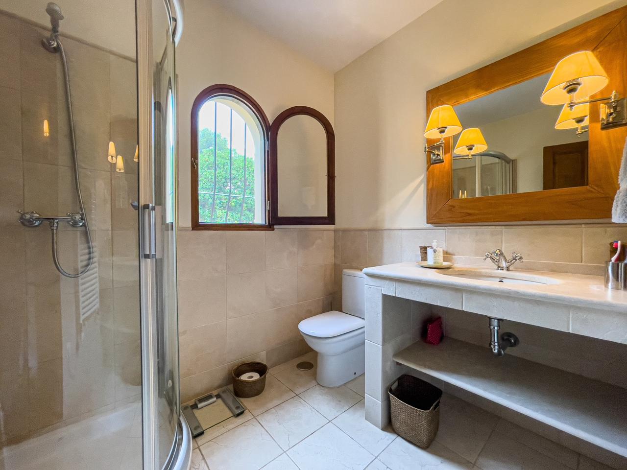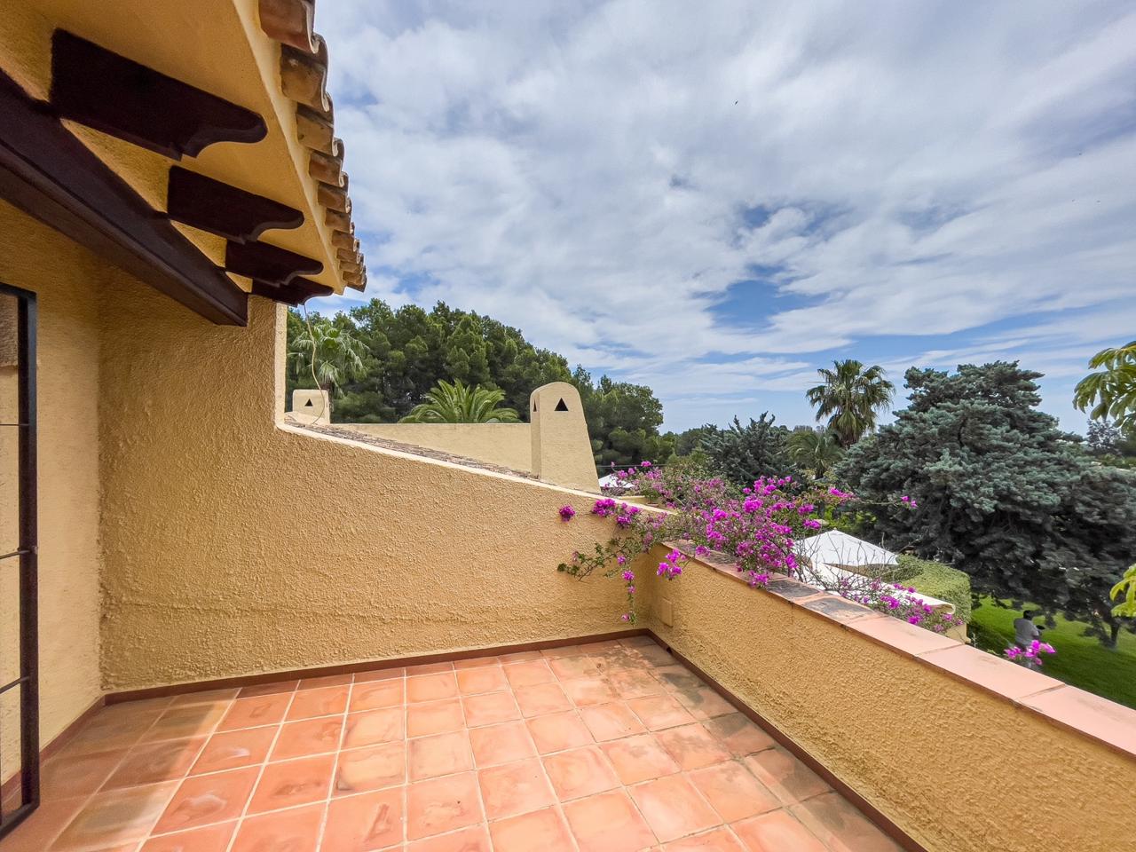 Este villa está dividida en dos plantas y tiene 330 m2. A través de la entrada principal entramos en un salón muy amplio con chimenea, el comedor también tiene una chimenea con acceso a la zona exterior con una piscina y un hermoso y bien cuidado jardín con plantas exóticas, palmeras y una barbacoa. A continuación, tenemos una cocina independiente totalmente equipada, una biblioteca, tres dormitorios, dos baños, un aseo de invitados y un lavadero. El dormitorio principal con una hermosa terraza, vestidor y baño está en la primera planta.