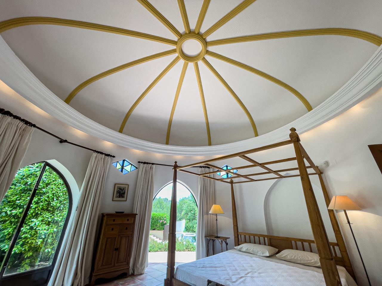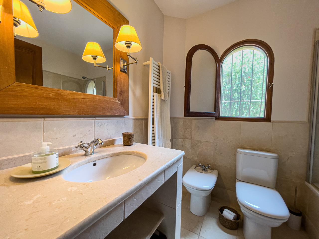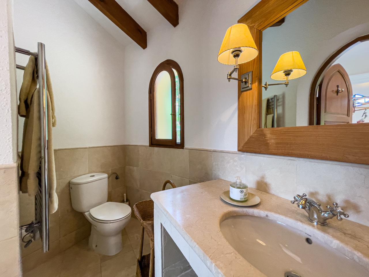Este villa está dividida en dos plantas y tiene 330 m2. A través de la entrada principal entramos en un salón muy amplio con chimenea, el comedor también tiene una chimenea con acceso a la zona exterior con una piscina y un hermoso y bien cuidado jardín con plantas exóticas, palmeras y una barbacoa. A continuación, tenemos una cocina independiente totalmente equipada, una biblioteca, tres dormitorios, dos baños, un aseo de invitados y un lavadero. El dormitorio principal con una hermosa terraza, vestidor y baño está en la primera planta.