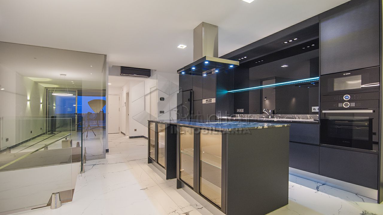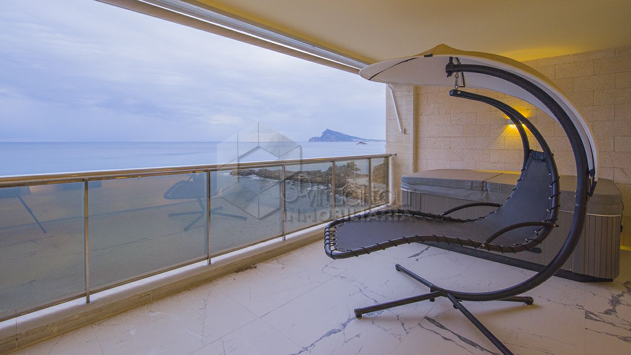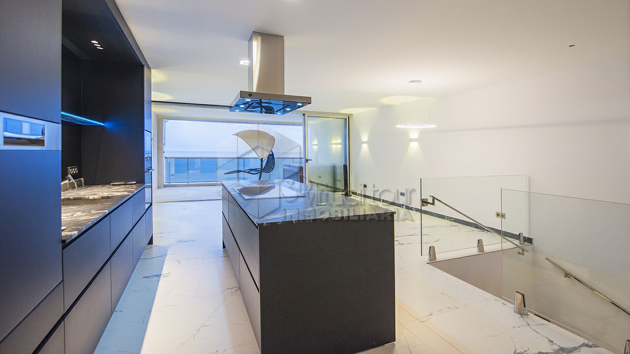 VT4758MD. Se vende un dúplex en la primera linea de Campomanes. El dúplex se distribuye en una amplia sala de estar con las vistas al mar, moderna cocina americana con la isla, un dormitorio con baño en suite y un lavadero, un espacioso balcón con jacuzzi y las vistas. En la planta baja hay dos dormitorios con baños en suite y con las vistas al mar. Parking incluido en el precio. Piscina comunitaria. Al lado de puerto de Mascarat.