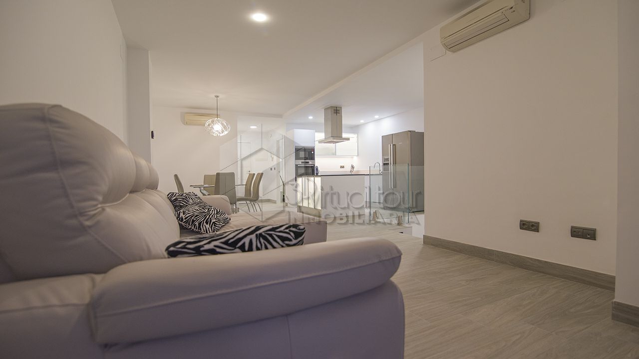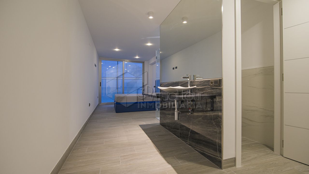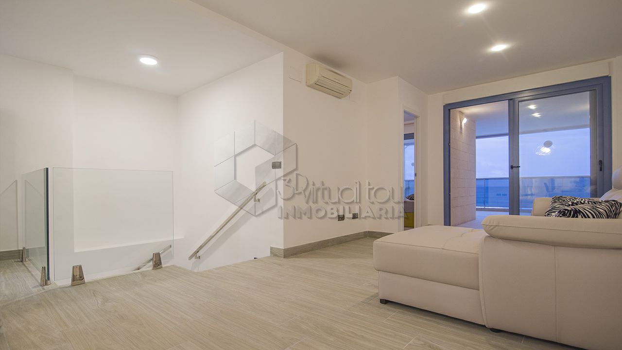 VT4760MD. Se vende un dúplex en la primera linea de Campomanes. El dúplex se distribuye en una amplia sala de estar con las vistas al mar, moderna cocina americana con la isla, un dormitorio con baño en suite y un lavadero, un espacioso balcón con jacuzzi y las vistas. En la planta baja hay dos dormitorios con baños en suite y con las vistas al mar. Parking incluido en el precio. Piscina comunitaria. Al lado de puerto de Mascarat.