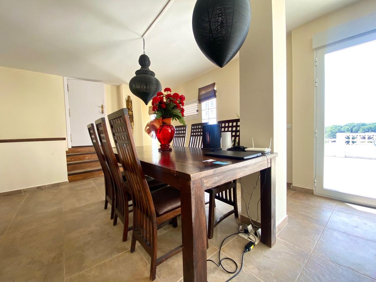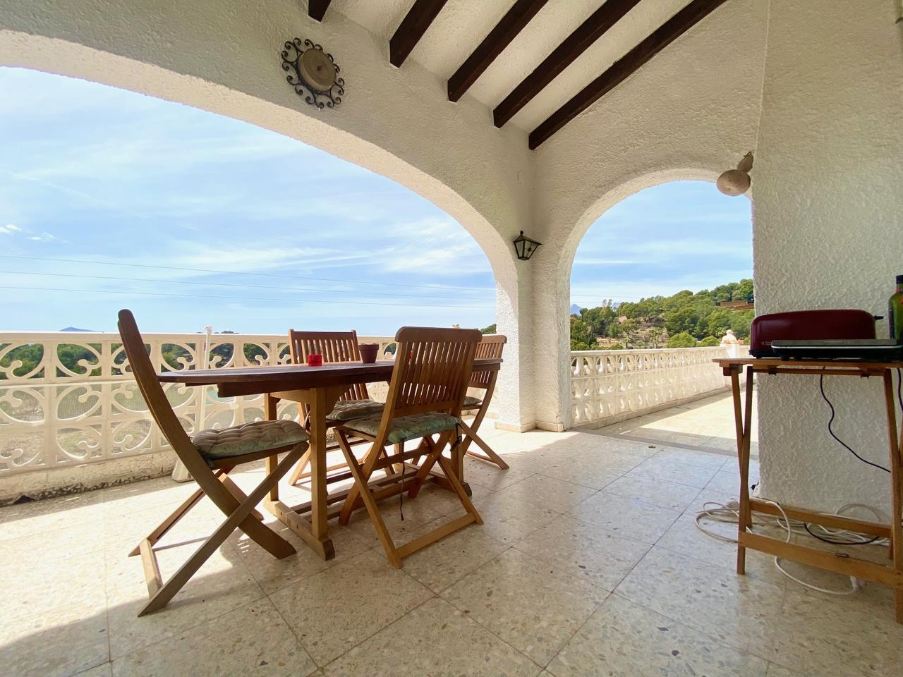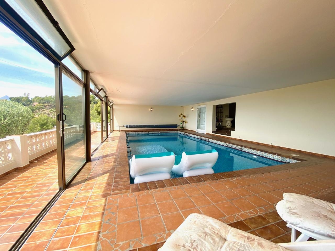 Este chalet de orientación Sur, se encuentra en Altea la Vieja, Alicante. Es un chalet que tiene 285 m2 de los cuales 250 m2 son útiles debido a una ampliación y dispone de 3 habitaciones y 3 baños, en una parcela tiene 928 m2La cocina totalmente renovada esta amueblada y está abierta al salón con chimenea y unas preciosas vistas del valle y la vegetación. La inmensa terraza con suelos modernos, dispone de diferentes áreas: una zona de comedor para disfrutar de una comida, sillones para descansar con un café y tumbonas para tomar el sol junto a un Margarita.La casa tiene dos habitaciones con armarios, aire acondicionado y 1 baño. En el nivel inferior hay una gran sala dedicada al ocio y descanso, cuenta con playroom, yakuzi y una gran piscina con grandes escalones para poder descansar mientras está dentro de la misma. Ducha para dos personas con música y un aseo.Cuenta con un pequeño apartamento para visitas, con entrada independiente. La casa cuenta con garaje cerrado para un coche, trastero y un jardín de secano con pinos, palmeras y flores muy fácil de mantener.