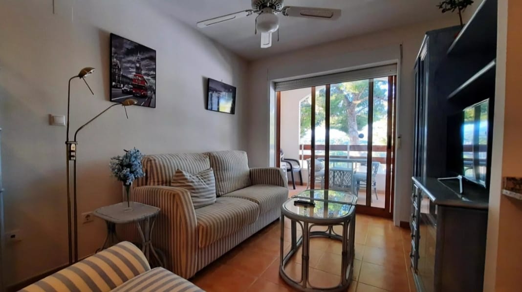 VT5621AA. Se vende un apartamento en zona de Albir. El apartamento tiene 50m2. Que distribuye en sala de estar, cosina, dormitorio y un baño. El apartamento se vende amueblado, cosina totalmente equipada. Aire acondicionado. Piscina comunitaria. Parking. Esta ubicado cerca de todos los servicios.