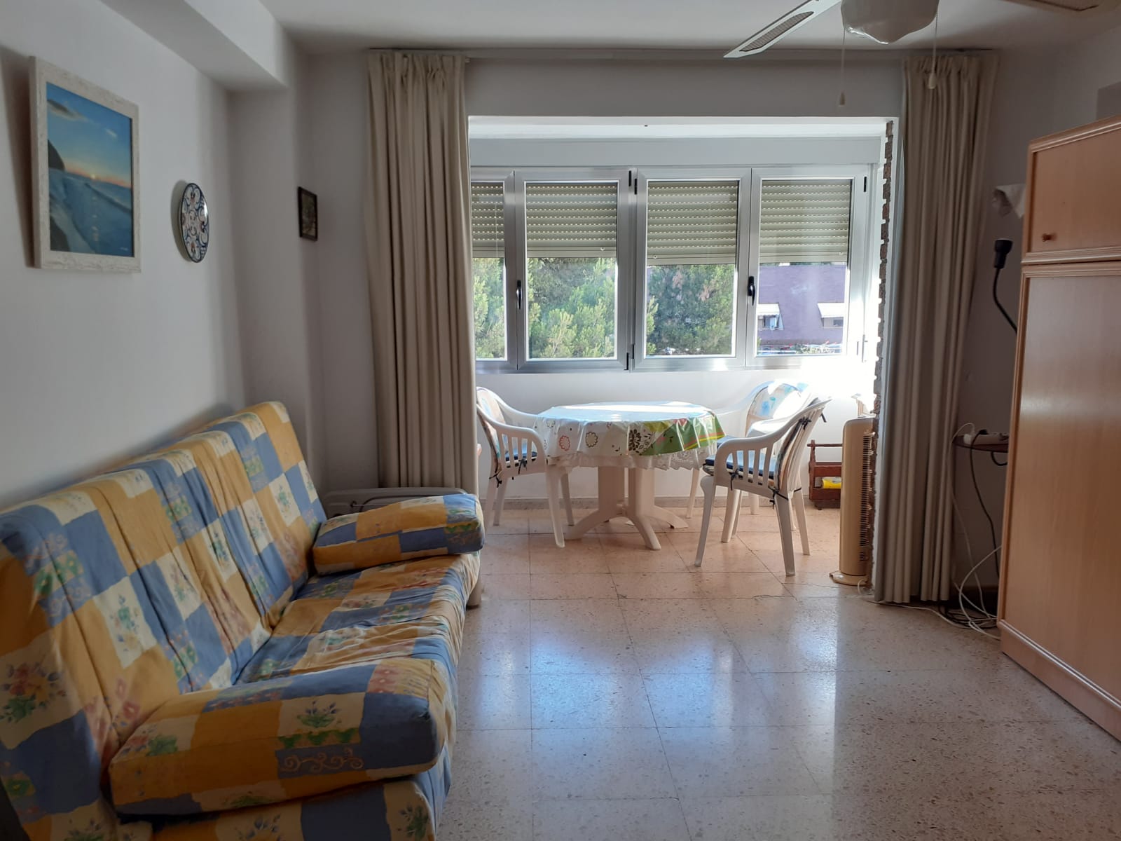 Se vende un apartamento en la 5 planta en Benidorm. El apartamento esta formado por una sala de estar, cocina independiente, un dormitorio, un baño y un gran balcón que se conecta con la sala de estar y el dormitorio. El apartamento se encuentra en una zona tranquila, familiar y a unos 100m de la playa, poniente. Incluido el garaje y la piscina comunitaria.