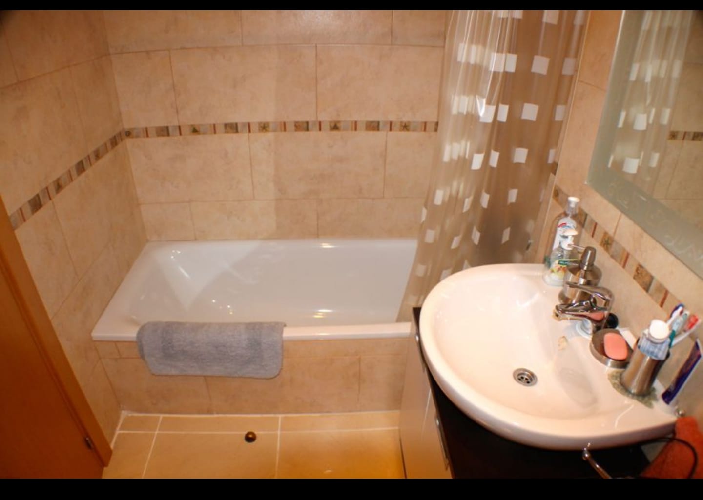 Se vende un apartamento en Cala Villajoyosa. Dispone de una amplia sala de estar combinada con el comedor, dos habitaciones dobles, dos baños con bañera, una cocina y una terraza de 10 m2 con vistas preciosas a las montañas. Hay un garaje subterráneo que se incluye al precio y una relajante piscina comunitaria. Cerca del edificio hay dos playas fantásticas una playa de Cala de Finestrat y una playa de Poniente. Se encuentra cerca de Lidl, Mercadona, Leroy Merlin, Aldi y el centro comercial La Marina.