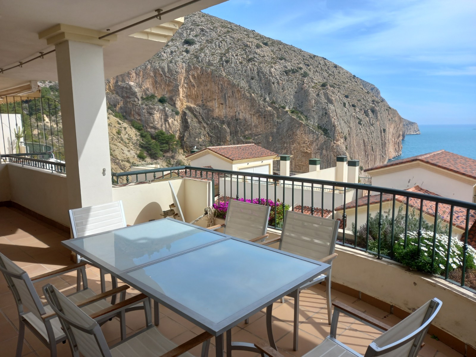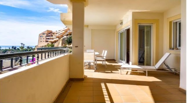 Se vende un apartamento de alta categoría en Mascarat en el 2 piso. El apartamento distribuye de una amplia sala de estar con la salida a la terraza con unas preciosas vistas al mar y a las montañas; tres dormitorios y dos baños. Se vende completamente amueblado, con electrodomésticos de alta calidad, aire acondicionado central. Incluye garaje para un coche y un trastero. Tiene una piscina rodeada por diferentes plantas.