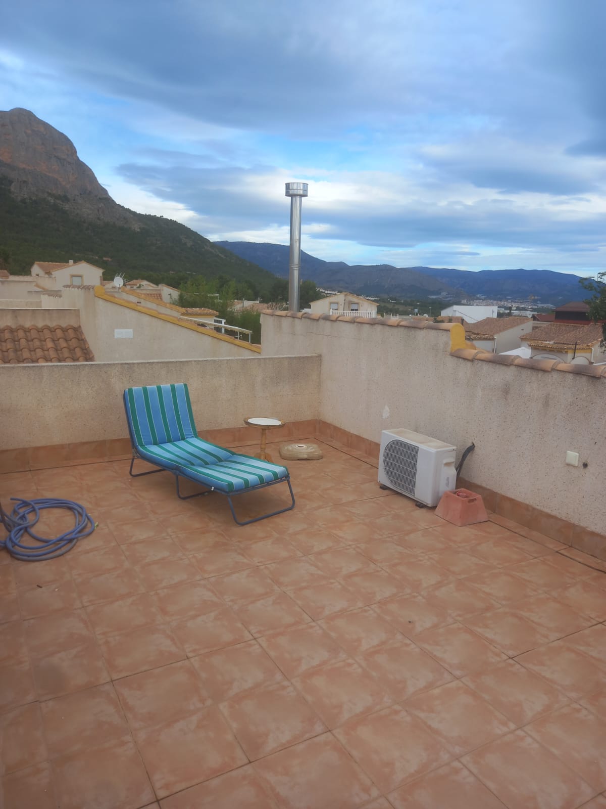 Se vende un bonito chalet en Polop. Tiene una planta y un solarium. Esta formada por una sala principal, cocina americana, dos dormitorios y dos baños. Tiene parking para dos coches, trastero y terraza amplia con vistas preciosas.