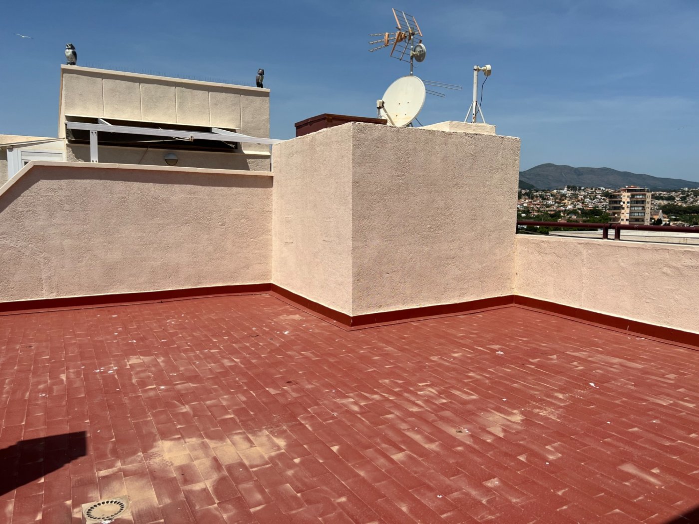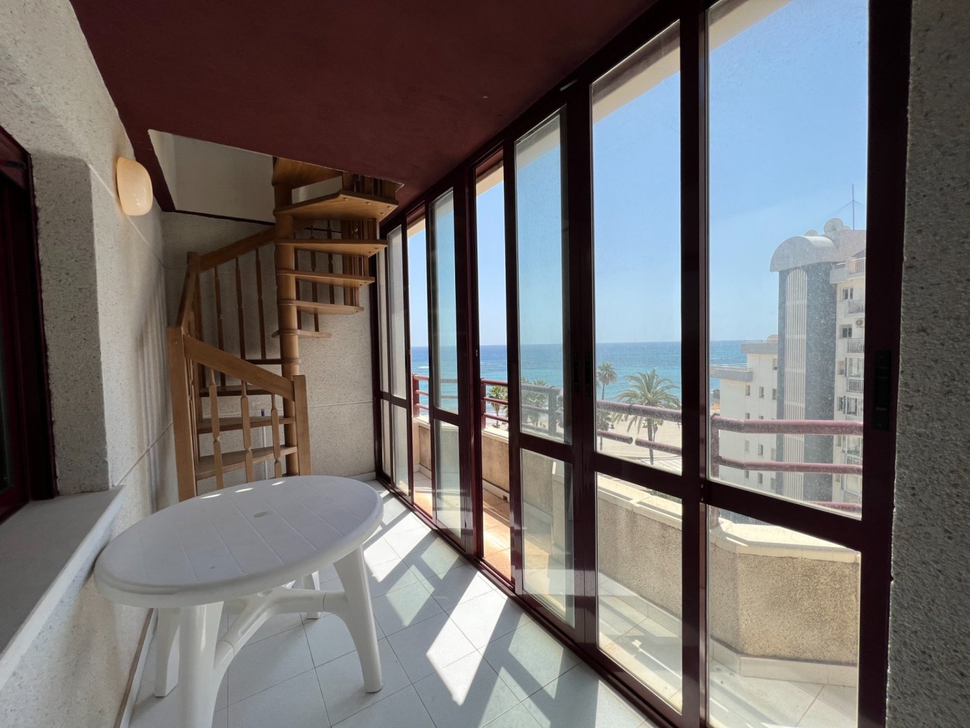 Se vende un dúplex ático en Calpe. El ático esta formado por dos plantas, en la 1 planta hay una sala de estar unida con el comedor, cocina americana, un baño de cortesía y una amplia terraza con magníficas vistas al mar y a las montañas, desde la terraza hay una escalera a la 2 planta, donde hay una sala de estar y tres dormitorios y un baño. El apartamento esta cerca de todos los servicios como restaurantes, tienda, supermercados… Además el edificio esta en primera línea y a 30m de la playa.