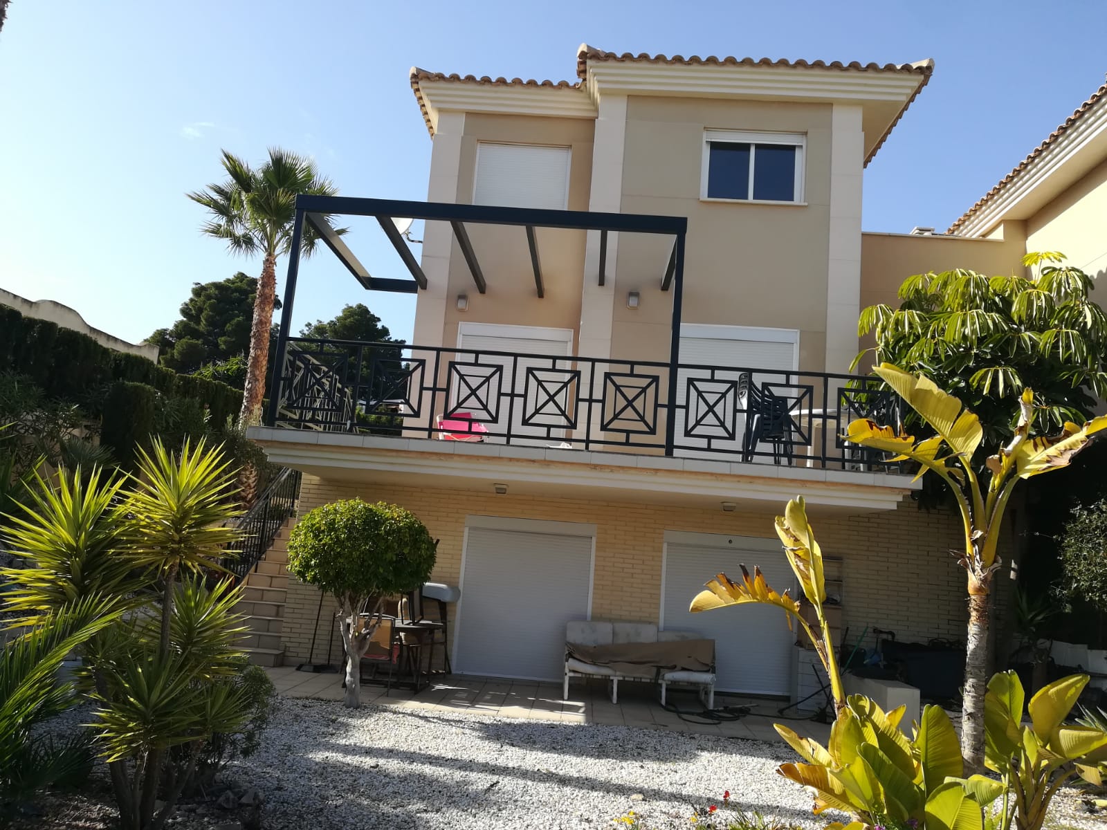 VT10947LD Se vende un chalet independiente, con vistas magnificas en una residencia muy cuidadosa. El chalet es de tres plantas. En la planta principal hay una sala de estar con la salida a la terraza que da justo al jardin privado. Cocina independiente. Landry y un baño de cortesia. En la planta alta hay tres dormitorios y dos baños completos un dormitorio en suite. En la planta baja hay un apartamento independiente. El apartamento se distribuye en una sala de estar, cocina americana, un dormitorio y un baño. Tiene un patio privado muy elegante. Parking para dos autos. Piscina comunitaia.