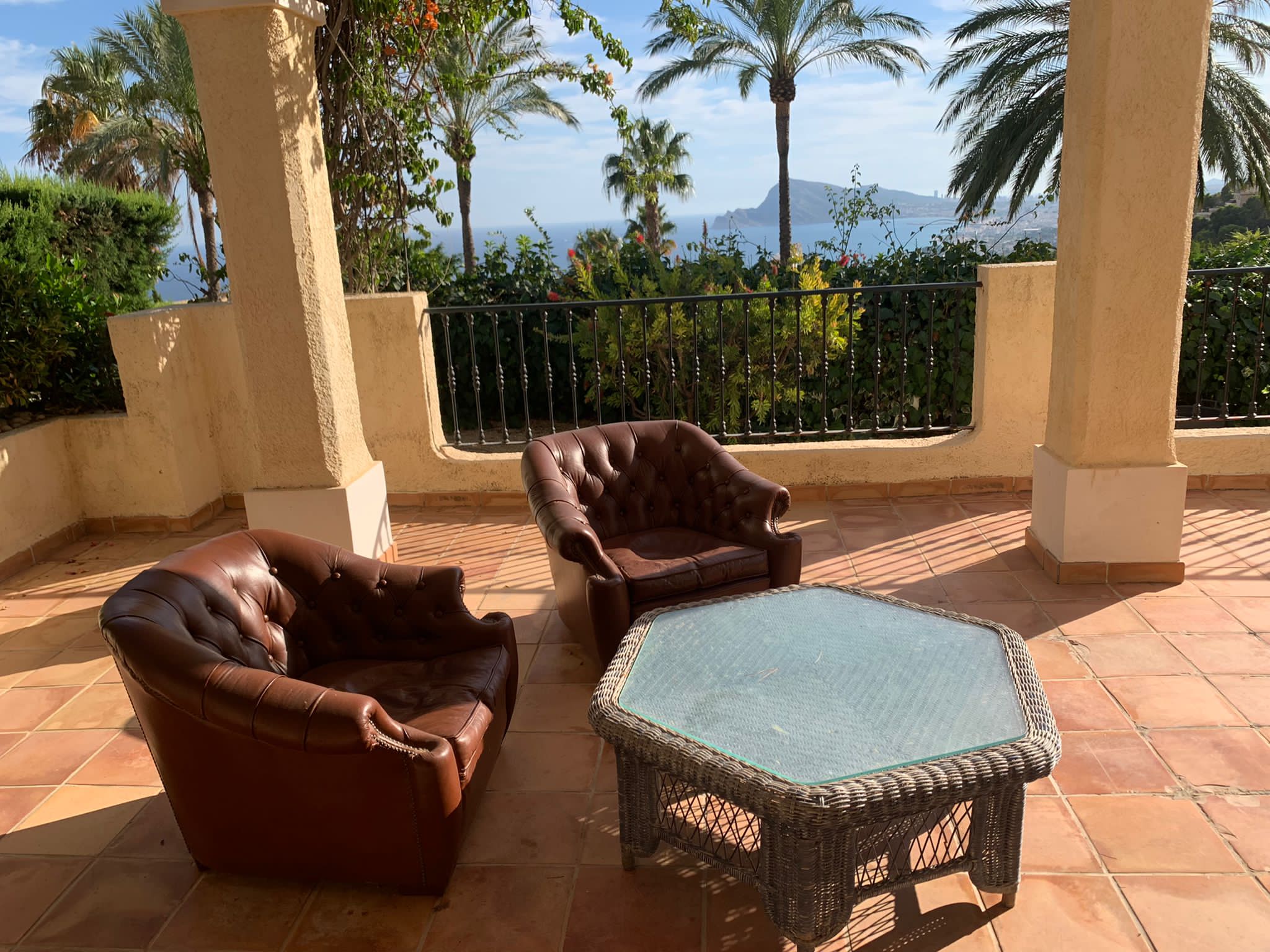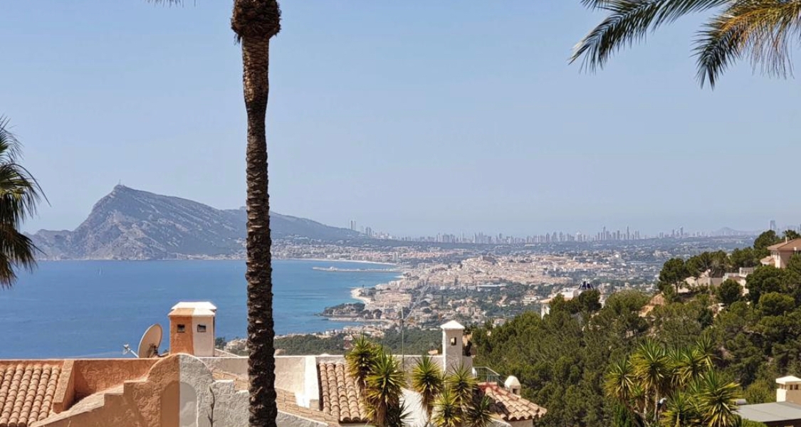Se vende una villa de lujo en la urbanización “Altea Hills” (Altea la vella/Altea). Chalet distribuye de dos pisos; en la planta baja hay una sala de estar con chimenea y salida a la terraza con una preciosas vistas al mar y a las montañas, cocina independiente, un dormitorio y un baño. En la planta alta hay dos dormitorios y un baño. Incluye garaje y trastero. También tiene una zona comunitaria formada por un piscina comunitaria con zona verde.