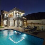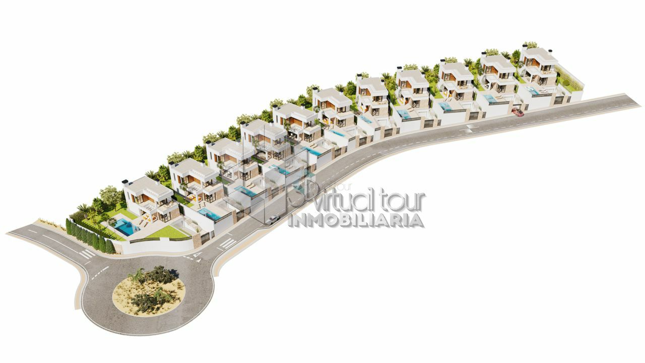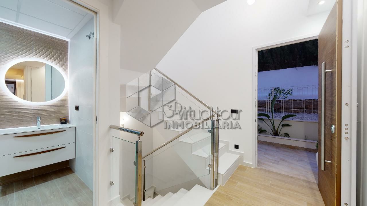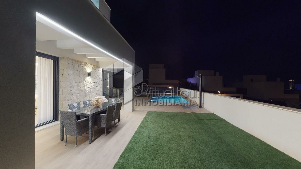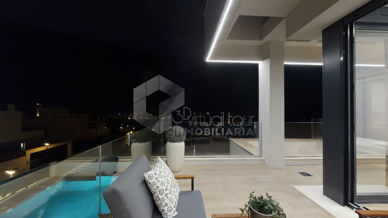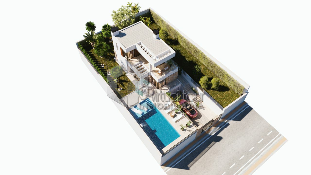 Se vende villa moderna de obra nueva, con vistas al mar y las montañas. Construcción moderna con tecnologías nuevas. Villa es de 2 plantas mas planta abajo del garaje. En la planta principal se encuentra una amplia sala de estar con la salida a la terraza, jardín y piscina privada. Cocina americana, un dormitorio en suite. La segunda planta se distribuye en 2 dormitorios, 2 baños completos y una terraza .Garaje, Parking.