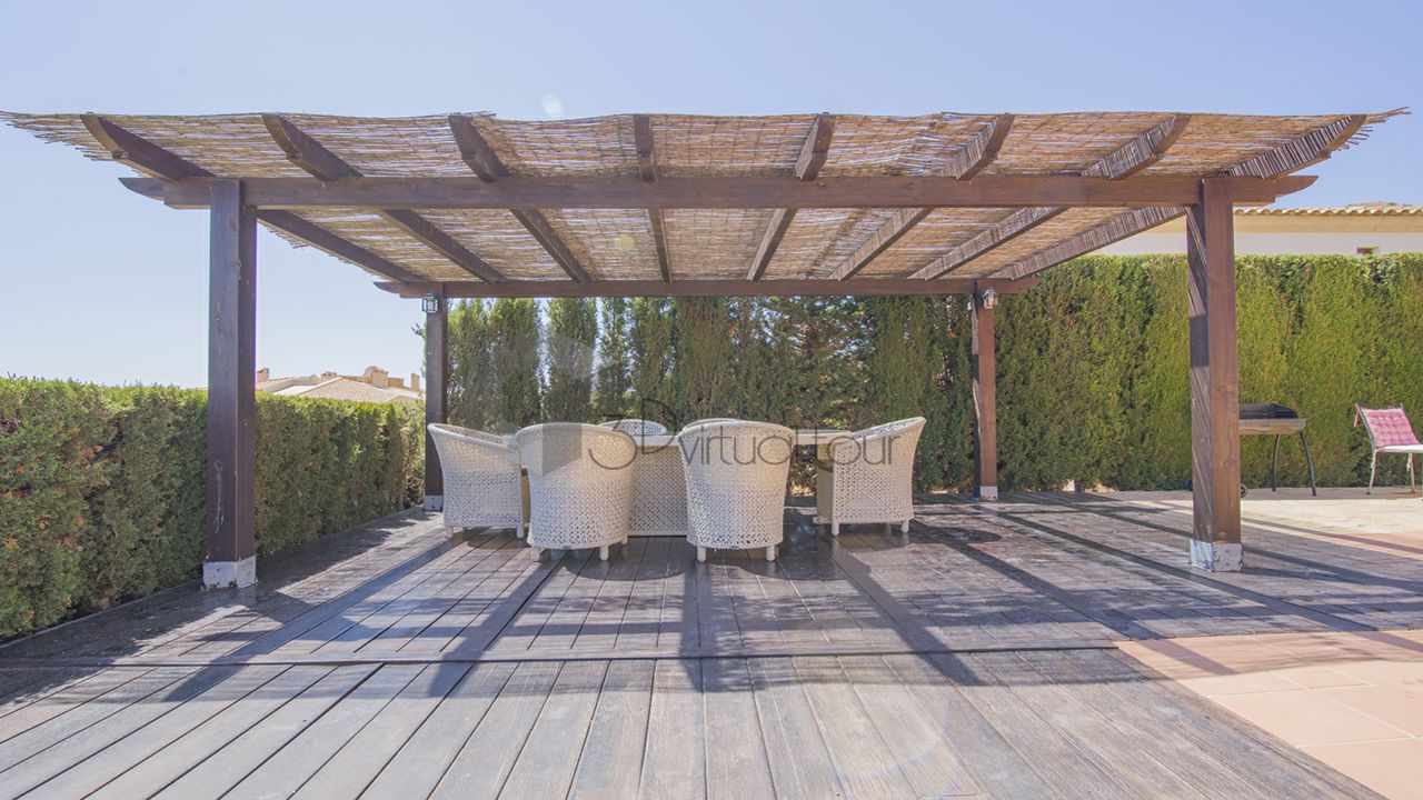 VA584FO.DISPONIBLE A PARTIR DE 1 DE FEBRERO. Se alquila una villa en Sierra Cortina. La villa esta distribuida en un recibidor, sala de estar con grandes ventanales, cocina americana y un dormitorio con baño en suit, tambien un habitacion como oficina o otro dormitorio. En la segunda planta hay 2 dormitorios y dos baños. Hay un espacio verde, patio privado con la piscina y zona arbolada. Urbanizacion donde esta ubicada la villa es una de mas cotizada de la zona. Esta a 1 km de centro comercial.