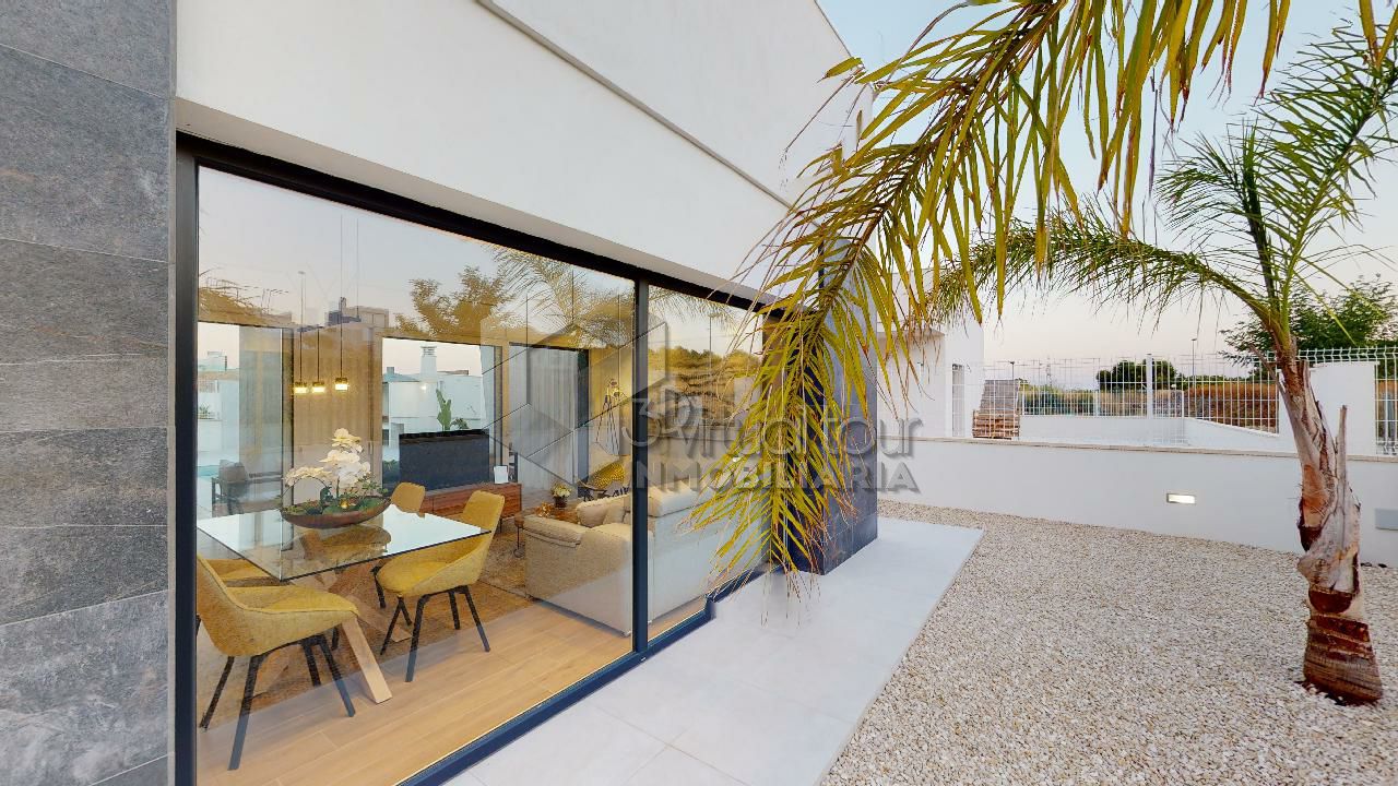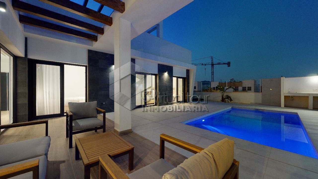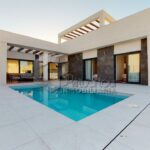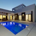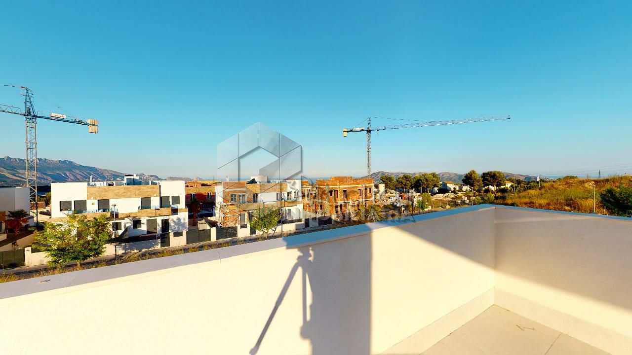 VT3506PI. Se vende Villa de obra nueva, con vistas al mar y las montañas. Construcción moderna con tecnologías nuevas. Villa es de una planta. Se destribuye en una amplia sala de estar con la salida al patio, jardín y piscina privada. Cocina americana, dos baños, tres dormitorios. En la segunta planta hay un amplio solarium de 60m2 con las vistas. Parking. Piscina privada. Tambien hay opcion de personalizar la construccion, modificar y agrandar m2.