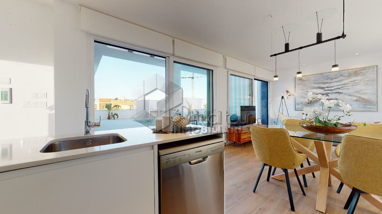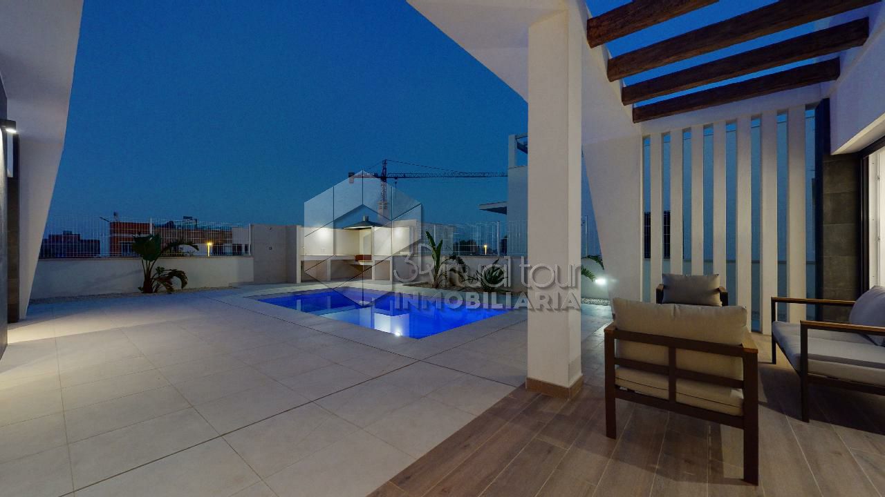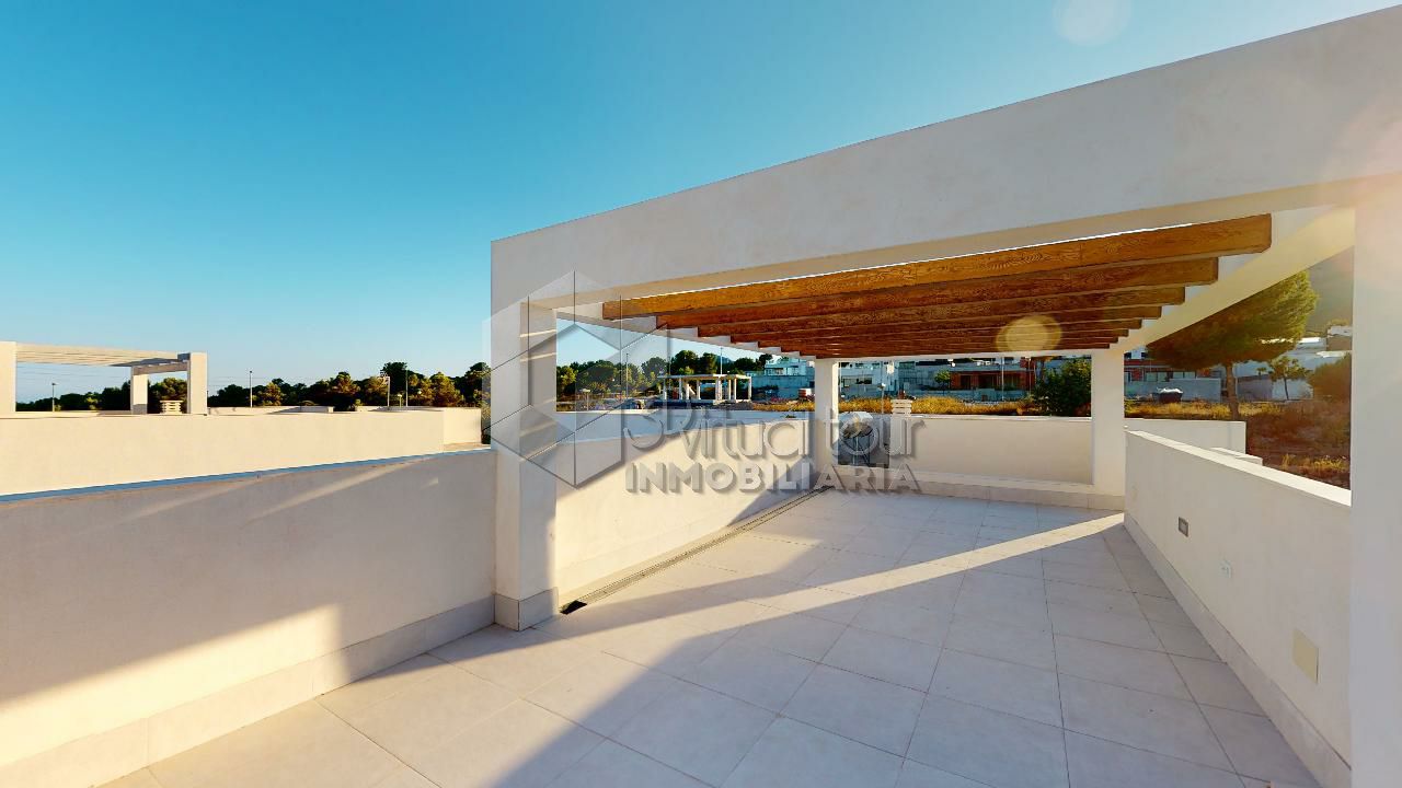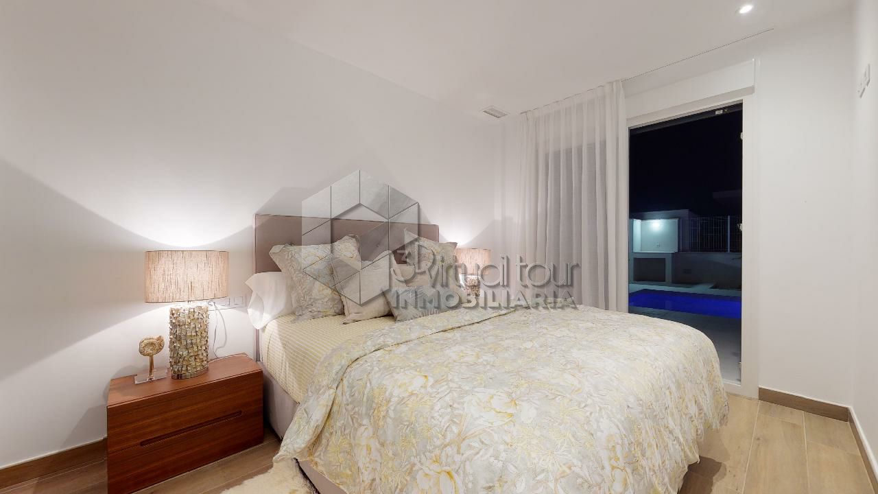 VT3506PI. Se vende Villa de obra nueva, con vistas al mar y las montañas. Construcción moderna con tecnologías nuevas. Villa es de una planta. Se destribuye en una amplia sala de estar con la salida al patio, jardín y piscina privada. Cocina americana, dos baños, tres dormitorios. En la segunta planta hay un amplio solarium de 60m2 con las vistas. Parking. Piscina privada. Tambien hay opcion de personalizar la construccion, modificar y agrandar m2.